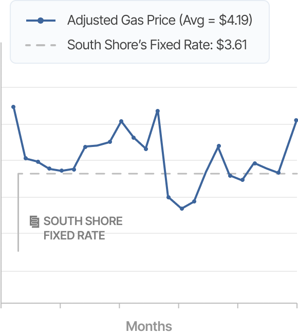 This chart highlights how securing a fixed contract at the right moment outperformed alternative market pricing, showcasing the savings achieved through proactive strategy.